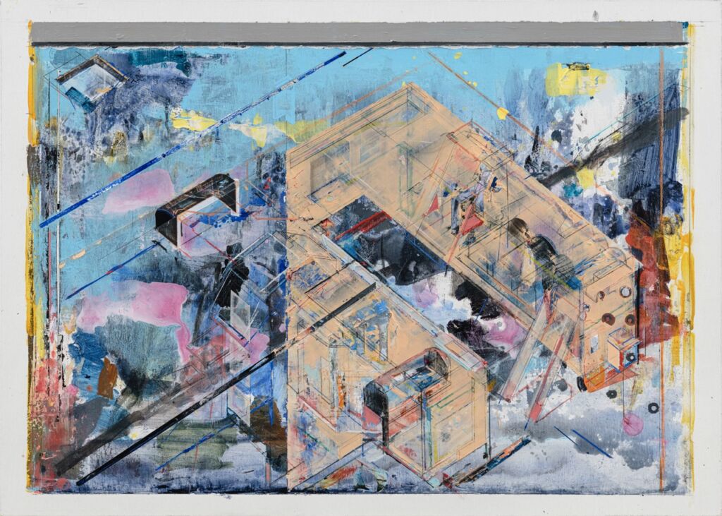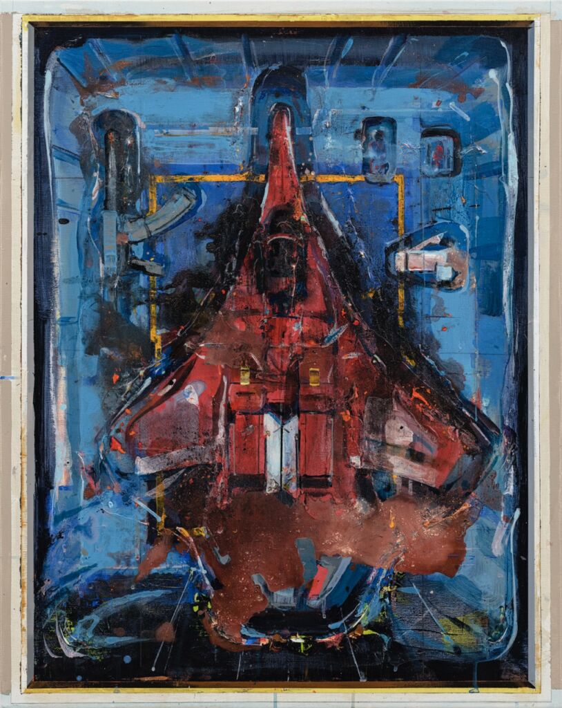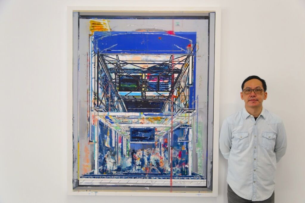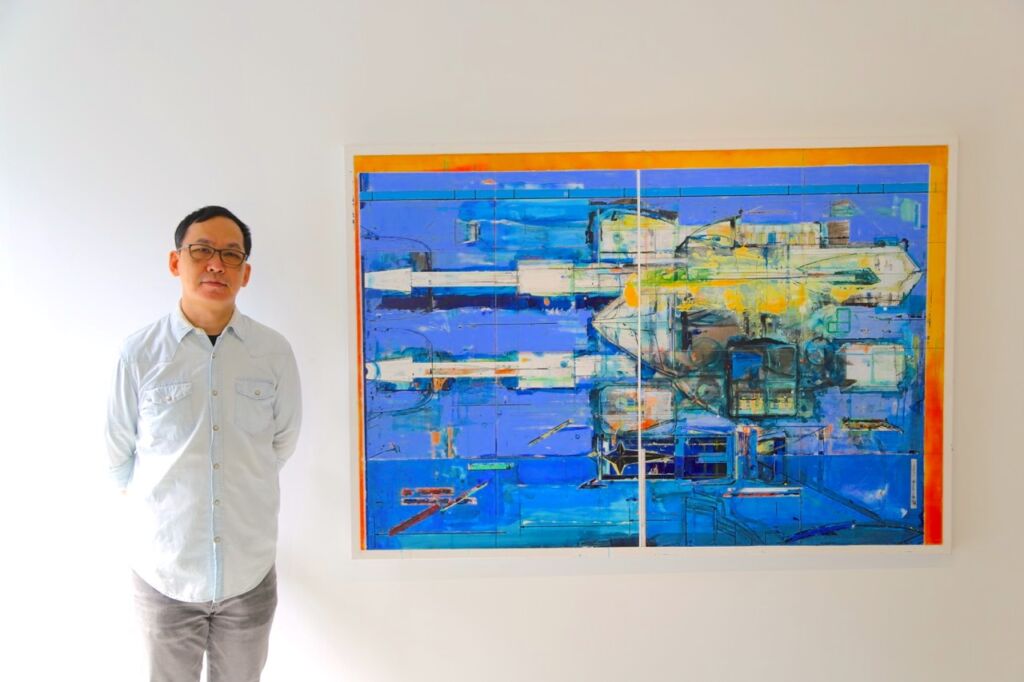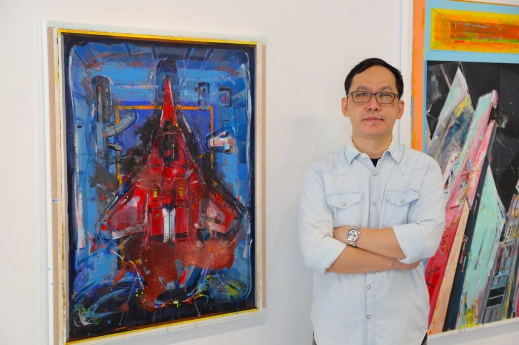 個人最喜歡陳建榮的作品,是這件命名為Aircraft 44的畫作,類似模型玩具的元素佔據整個畫面,而且顏色又極度鮮明,想不注意都有點困難。而藝術家表示他還蠻喜歡收集變形金剛類型的玩具,但他更喜歡將玩具公司出版的平面圖或立面圖當作自己的創作靈感來源,從中發掘屬於他的藝術語彙與內涵。