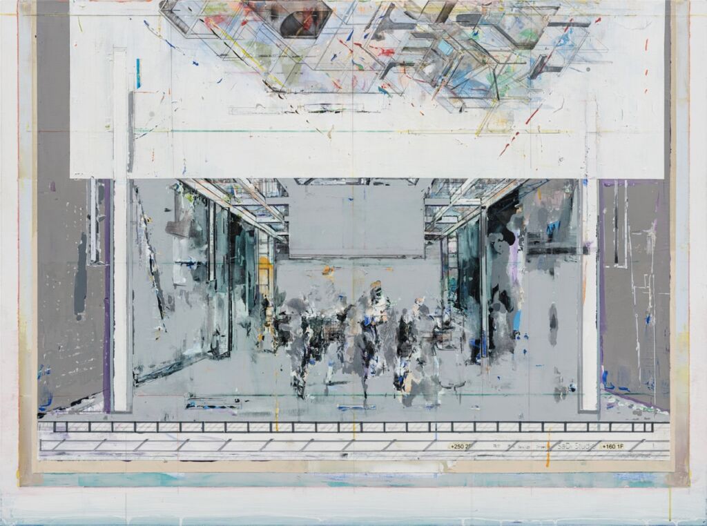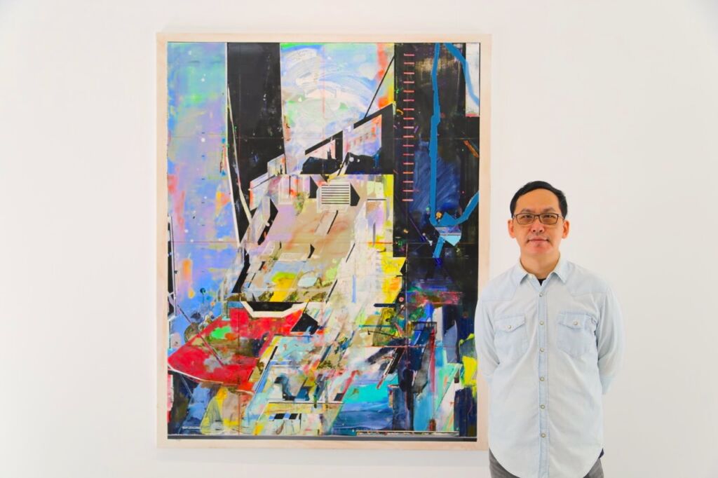 不過跟陳建榮閒聊後發現,其實他的學院素養非常的高,尤其是在南藝研究所求學期間,深受師長的影響與啟發,也就造就陳建榮的作品,充滿著濃濃學院影響的思辨過程。很多畫面構成都是經過極度理性下所做的安排與規劃,絕非是隨機亂塗,或是肆意而為,就算有些時候為了讓作品具有繪畫性,採用自動性技法,但最終還是被他的理性思維所重新塑造,展現看似繪畫性又非繪畫性的矛盾錯覺。