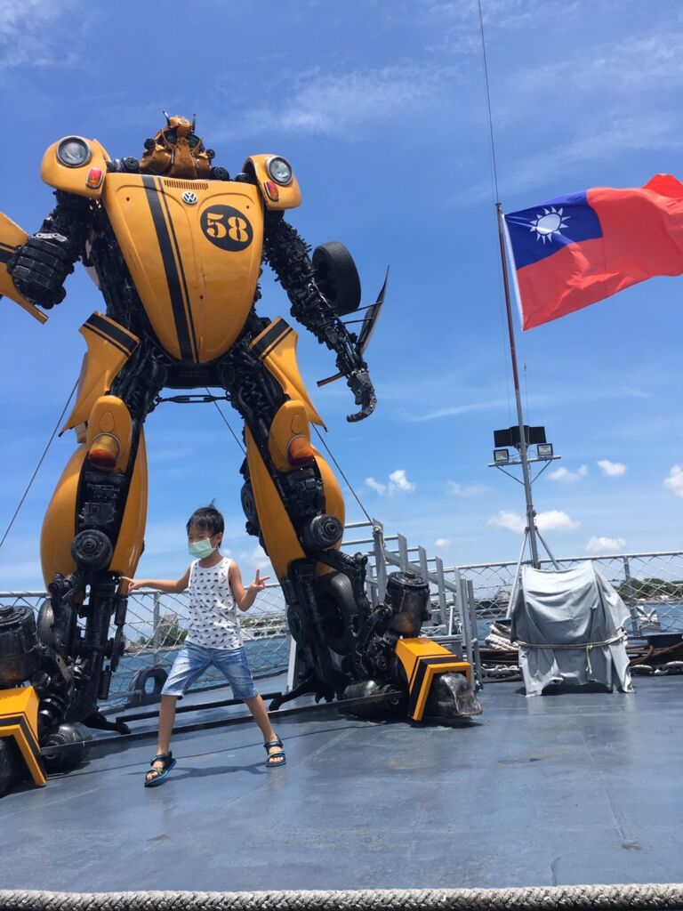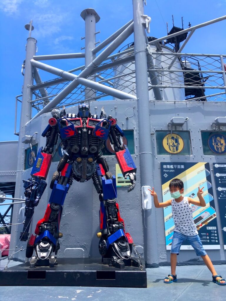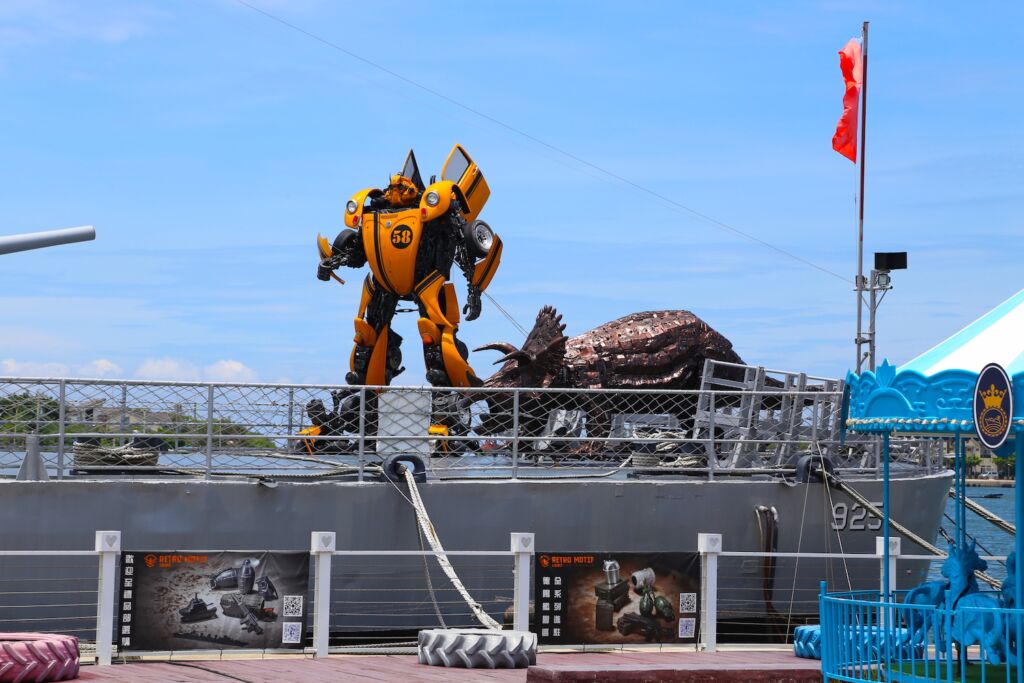 安平定情碼頭德陽艦園區每一段時間都會有期間限定的展覽,曾經有過「精典泰迪熊航行世界之旅台灣站」,目前是「鋼鐵機器人特展」,所以甲板上站立的都是特別製作的機器人,而軍艦旁所展示的是鯊魚造型S-2T渦輪反潛機,是個適合全家一同前往參觀的台南熱門景點。