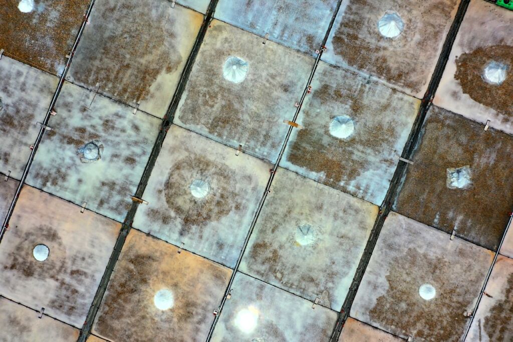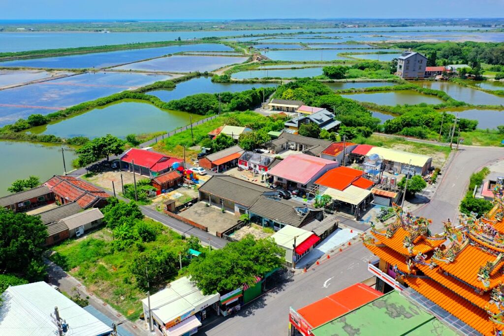 ▶︎青鯤鯓扇形鹽田位於台南將軍區鯤鯓里,是一個必須從高空中才能一窺全貌的景點,也才明白它是一座多麼大的鹽田,而且空拍機上升到90到100公尺,也才能勉強拍攝到其大致的輪廓。